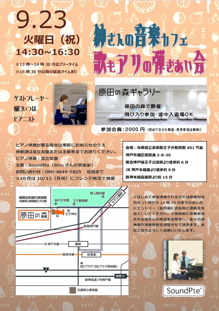 / 最終更新日時 : Itsuha ゲスト演奏 2025年9月23日火曜日(祝)紳さんの音楽カフェ 歌もアリの弾きあい会 紳さんの音楽カフェ 歌もアリの弾きあい会[原田の森ギャラリー]にて、ゲストで演奏させて頂きます。